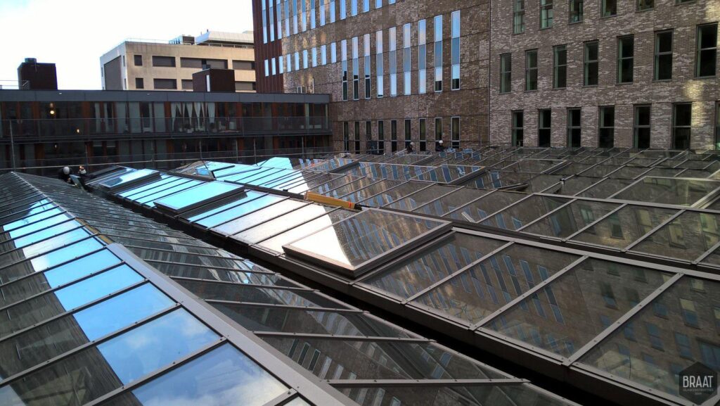 Officia III Amsterdam Producttype: Zadelkap Braat 1844 HI semi-structureel systeem Locatie: Rotterdam – Nederland OpdrachtgeverJ.P. van Eesteren B.V. Oppervlakte400 m2 Terug naar overzicht Braat glasconstructies 1844 heeft meegeholpen aan de renovatie van Officia III te Amsterdam.Braat glasconstructies 1844, onderdeel van Hakvoort daglicht, heeft gezorgd voor de overkappingen van twee binnenpleinen bij Officia III. De binnenpleinen zijn overkapt met het Braat HI structureel gekit systeem. De overkappingen zijn beloopbaar gemaakt voor onderhoud. Terug naar overzicht