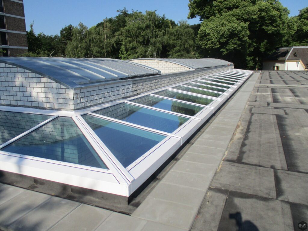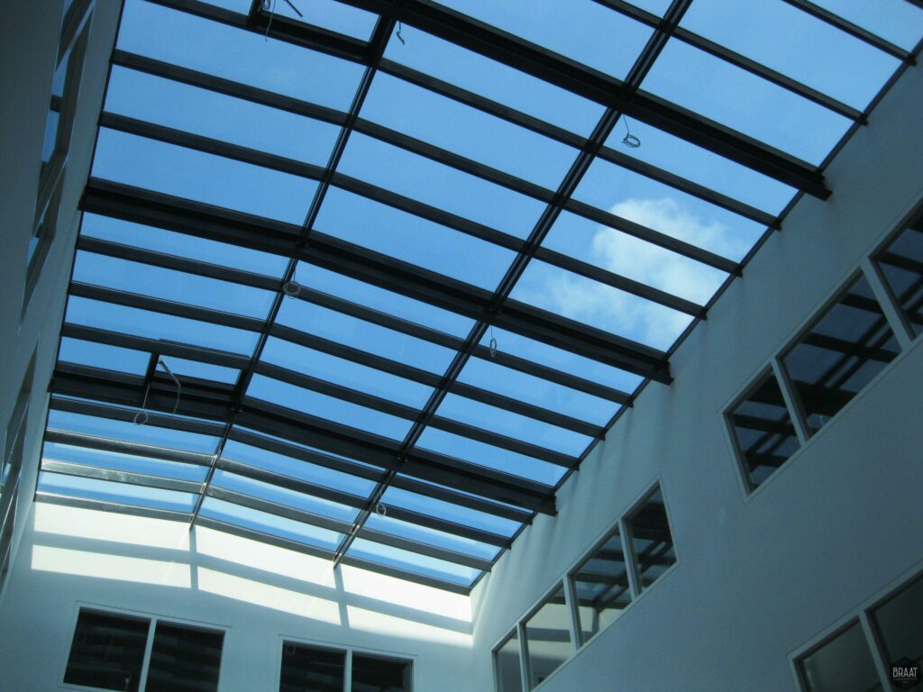 Da Vinci College Roosendaal Producttype: Braat HI beglazingsysteem in volledig maatwerkBeglazing: geïsoleerde zonwerende veiligheidsbeglazing Atrium bestaande uit vijf stuks lessenaarsdaken voorzien van 12 stuks rook- en warmte afvoer eenheden. Locatie: Roosendaal – Nederland OpdrachtgeverBVR Groep Oppervlakte400 m2 FotograafFotografie:Petra Appelhof Terug naar overzicht Nieuwbouw Da Vinci College Roosendaal Braat glasconstructies 1844, onderdeel van Hak4t slimme lichtoplossingen heeft het atrium met RWA installatie uitgevoerd voor het Da Vinci College. Eveneens is er ook een lichtstrook toegepast ter plaatse van de gymzaal. Terug naar overzicht